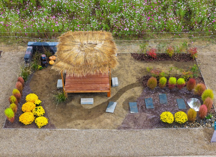 17. 초가삼간의 가을 / 고즈넉 작품명 초가삼간의 가을 팀명 고즈넉 참가자 강현주, 주유진 페이지 정보 작성자 관리자 댓글 0건 조회 20회 작성일 25-11-05 18:35 목록으로 본문 Detail view “초가삼간 지어 두고 국화꽃 심어 두니 황국 향기 속에서 늦가을이 좋구나”연못처럼 펼쳐진 거울을 통해 맑은 하늘 속 화원의 전경을 조망하고, 정자에 앉아서 휴식과 사색을 즐길 수 있다. 목록